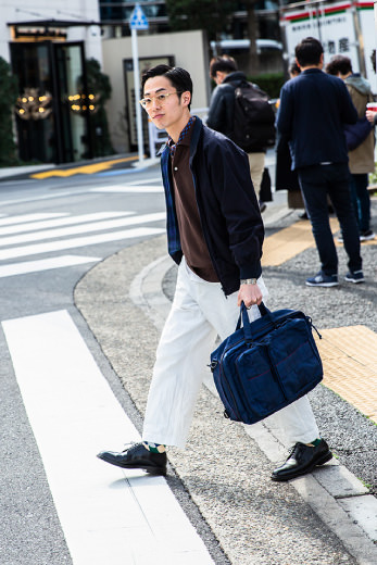 「<BRIEFING>は大好きなブランドなのでかなりの数を所有しているんですが、フリートメッセンジャーは今回が初めて。以前からこのモデルのことは知っていたんですが、実際に使ってみるととにかくサイズが自分好み。通勤用として最高ですね。僕の場合、iPadが入るサイズというのが絶対条件なんですけど、大きすぎるバッグはNG。そして常に手ぶらでいたいので、このフリートメッセンジャーは、まさに理想の形なんです」
