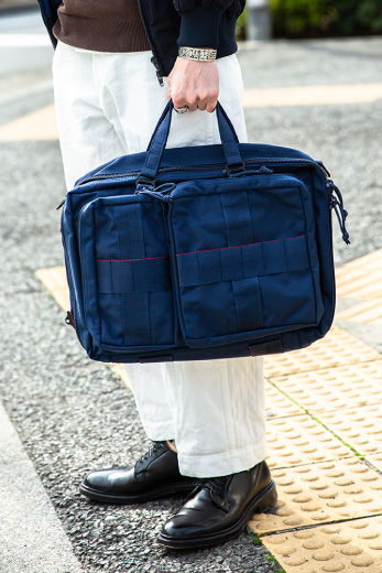 「とにかく機能性の素晴らしいバッグブランドですよね。そしてスーツにも合うミリタリーバッグの先駆けではないでしょうか。ここまでオンとオフ両方に使えるバッグってないんじゃないですかね。僕自身、前職時代を含めて、20年近く<BRIEFING>の担当をさせてもらっているので、普通の編集者よりも<BRIEFING>への思いはかなり強いと思います(笑)。BEAMS PLUSとの別注モデルも素晴らしいモデルが多いですよね。中でも僕の中で一番思い入れのあるのが『3WAY BAG』。初めて見たときはかなりの衝撃を受け、前職時代にはこのモデルだけで3回に分けて紹介したぐらいですから(笑)。このフリートメッセンジャーも新たなる定番バッグとして、これからお世話になるつもりです(笑)」
