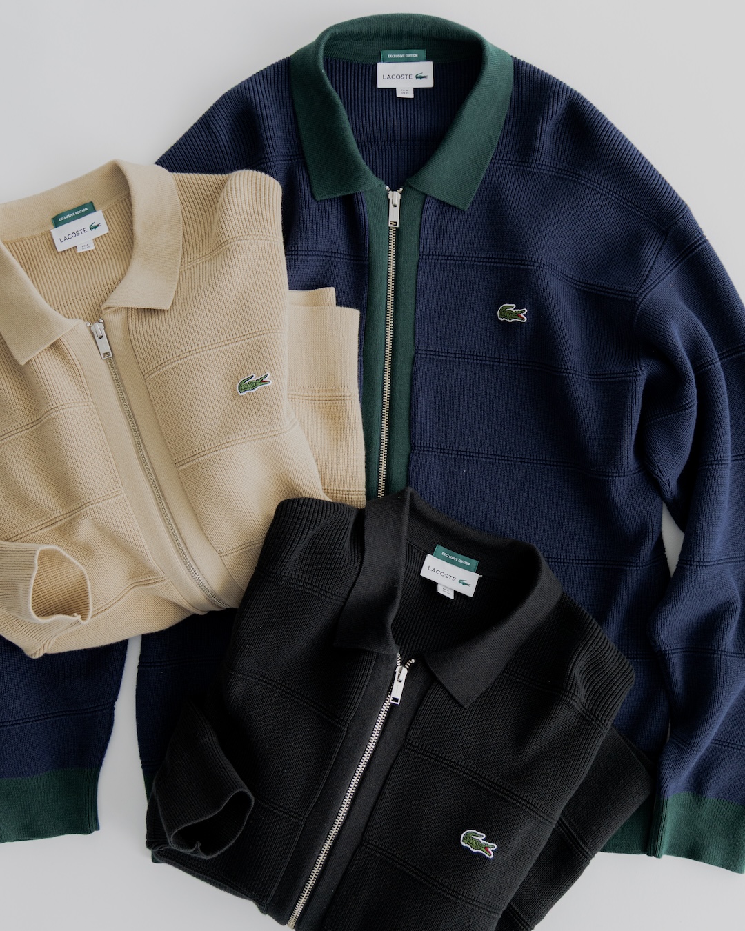 ジャガード編みによる立体感と奥行きのある表情で従来のカーディガンとは一線を画す、大人の〈LACOSTE〉が完成!ダブルジップとリラックスシルエットにより、ニットジャケット感覚で羽織れる着回し力の高さも魅力。シワになりにくいコットンナイロン素材で、これからの季節、ヘビロテ必至なアイテムです。