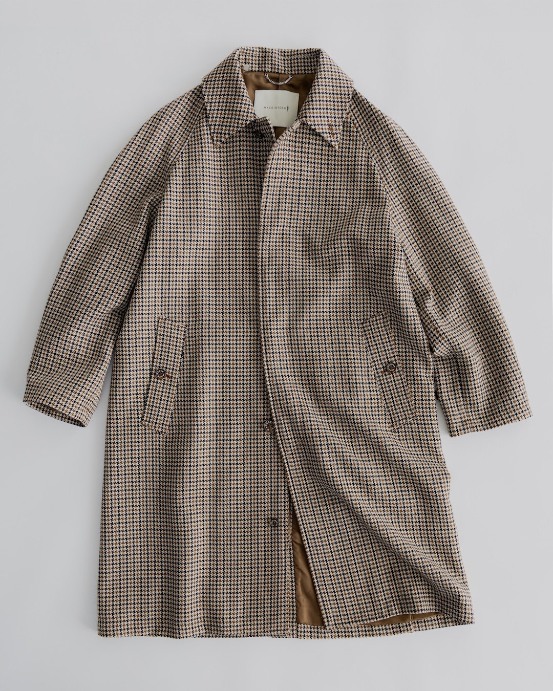 英国調のガンクラブチェックが目を惹くバルカラーコート。太番手のウールを甘く織り上げたドライなタッチと、独特のドレープ感が魅力です。ラグランスリーブの普遍的なデザインは、まさに時代に左右されない“一生モノ”の証。オンオフ不問な上に、誰でも程よく上品さを醸し出せる、理想の一着がここに。