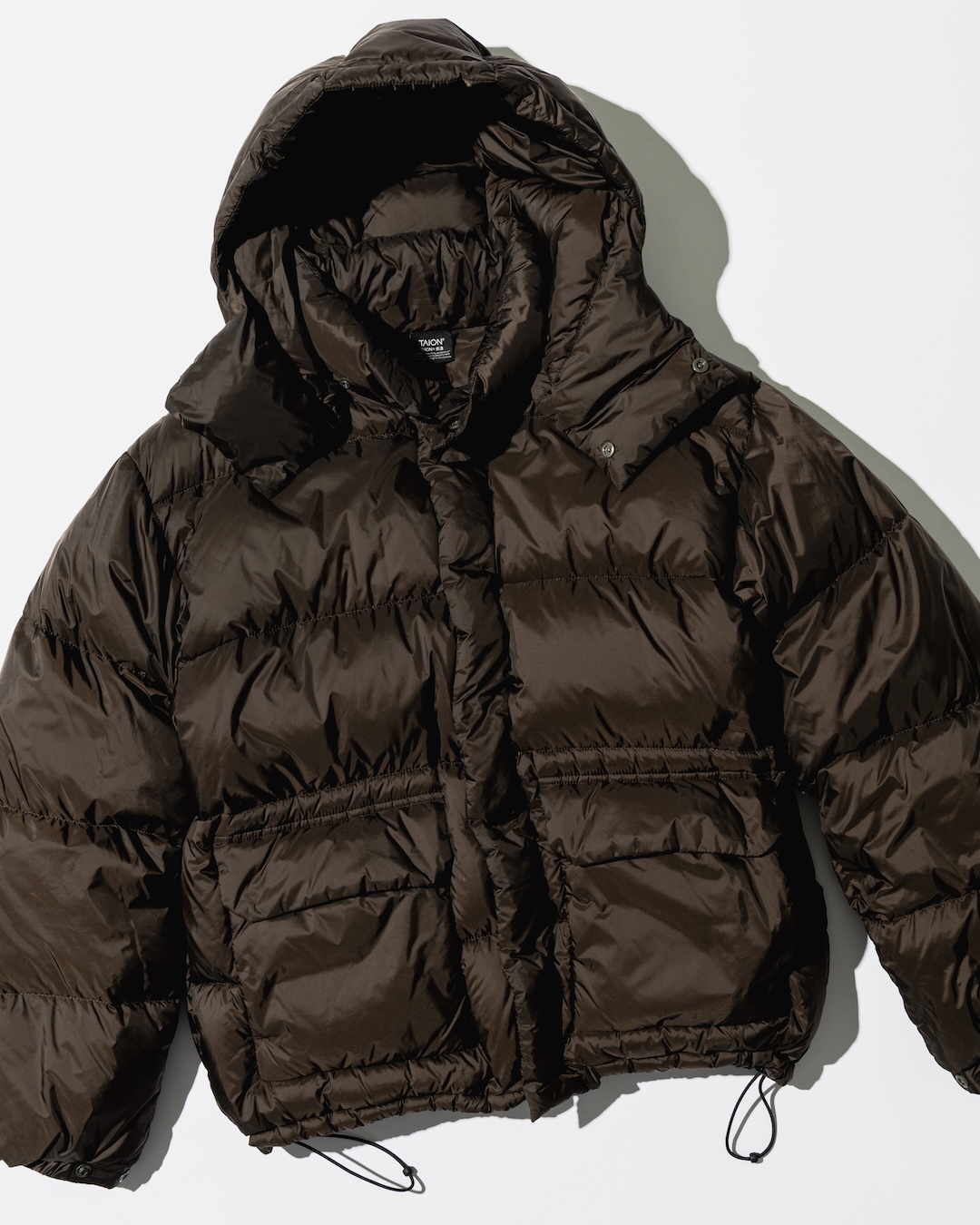 ミリタリーライナーとフライトジャケットをイメージした〈TAION〉の別注ダウン。どちらも撥水ソフトシェル生地を採用し、高級感がありながら街着として映える仕上がりに。800フィルパワーの高品質ダウンで、抜群の保温性と驚きの軽さを実現。ロゴ入りの収納ポーチ付きなので、旅先やアウトドアまでお供します。