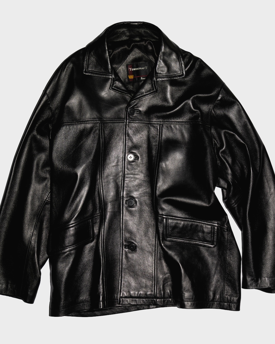 〈TOWN CRAFT〉が生んだ70年代の名作を型から別注した、風格漂うカーコート。重厚感はそのままに、襟の開き具合や袖丈を調整し、現代の着やすいバランスにアップデートしました。レザー専門工場で職人が丁寧に縫製したこだわりを感じる逸品。“エッジの効いたかっこよさ”を楽しむには欠かせない一着です。
