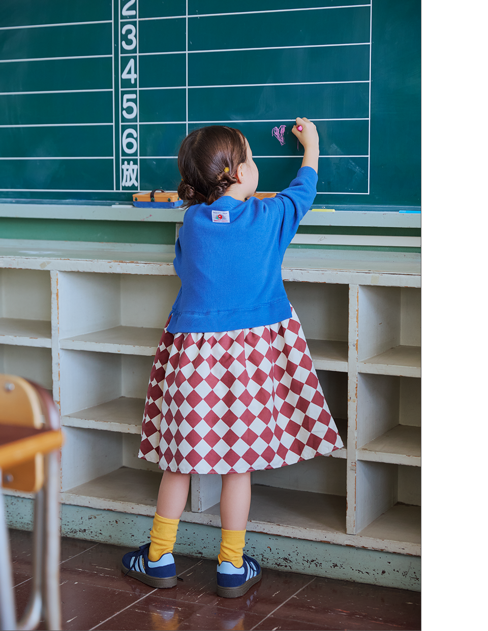 鮮やかな色使いで通学コーデに遊びをプラス。〈フルーツ・オブ・ザ・ルーム〉別注のスカートドッキングワンピースは、一枚でコーデが決まる優れもの。カラーブロッキングが楽しい男の子コーデは、動きやすさとおしゃれさを両立。毎日の学校生活が楽しくなること間違いなし♪