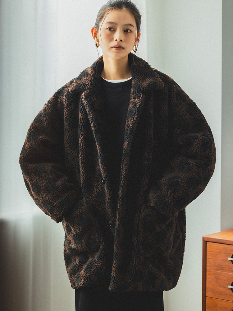 黒のワントーンが引き立てる、大胆なウサギ柄をあしらったボアブルゾン。ボアの豊かな質感が上質な風合いを叶え、上品なエッジをほんのり添えてくれる。