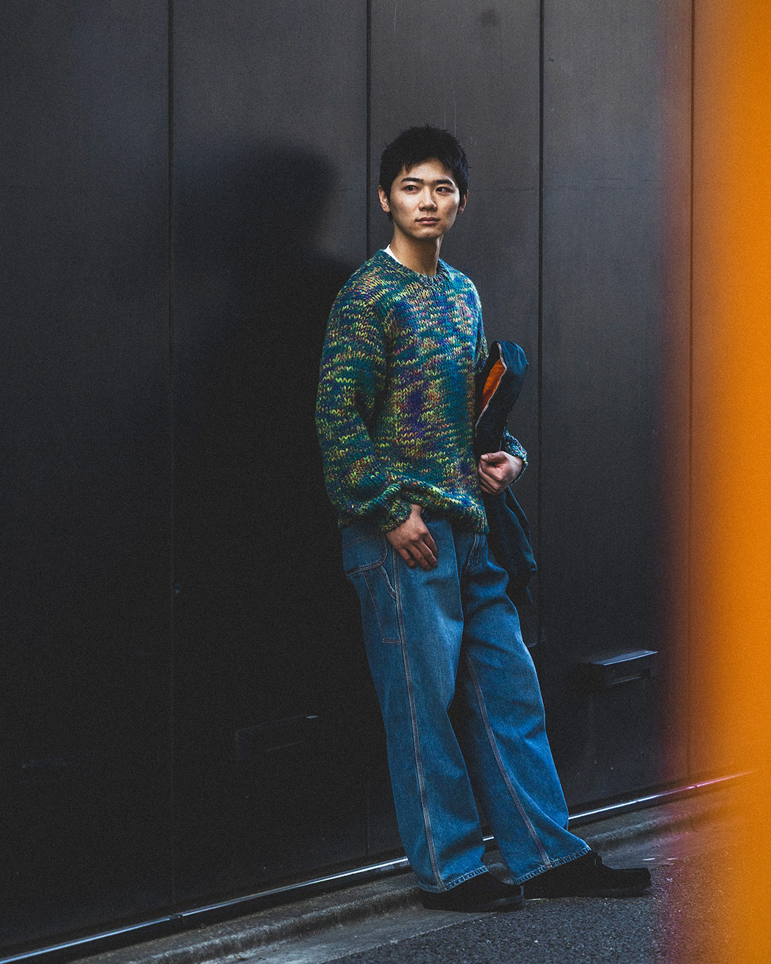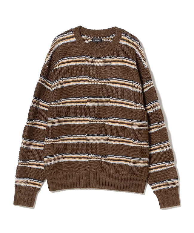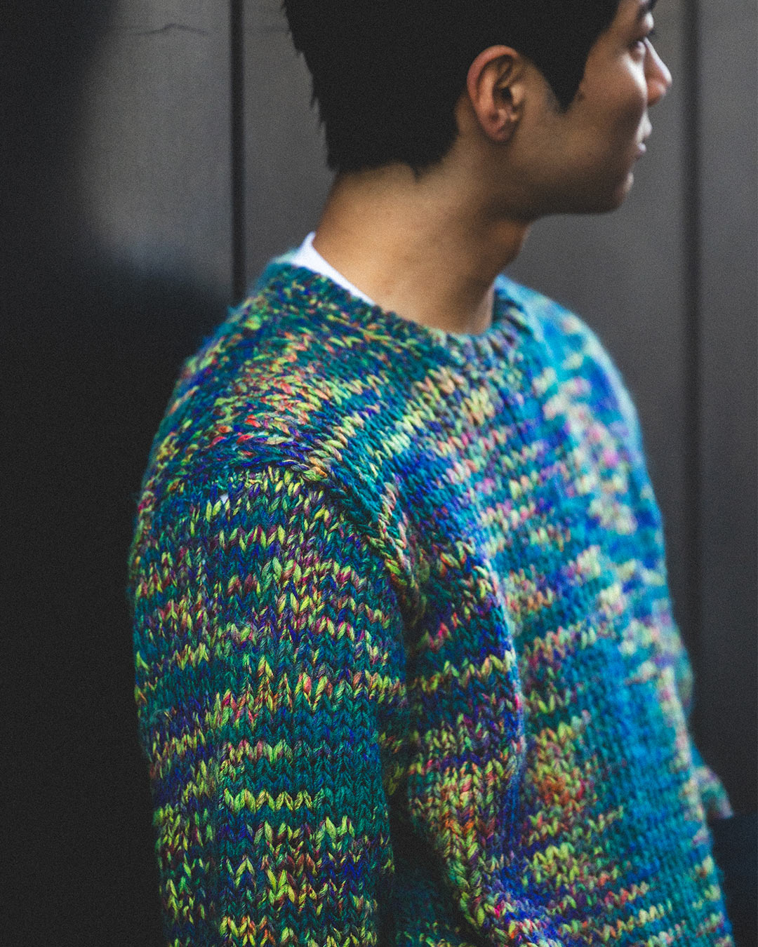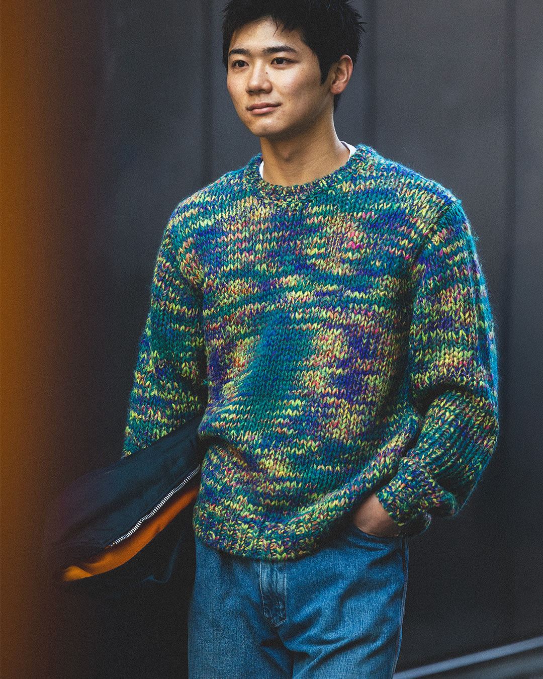 鮮やかなミックスカラーが魅力的なデザインニット。個性的でも、日常使いしやすい絶妙な色合いで着回し力も抜群。