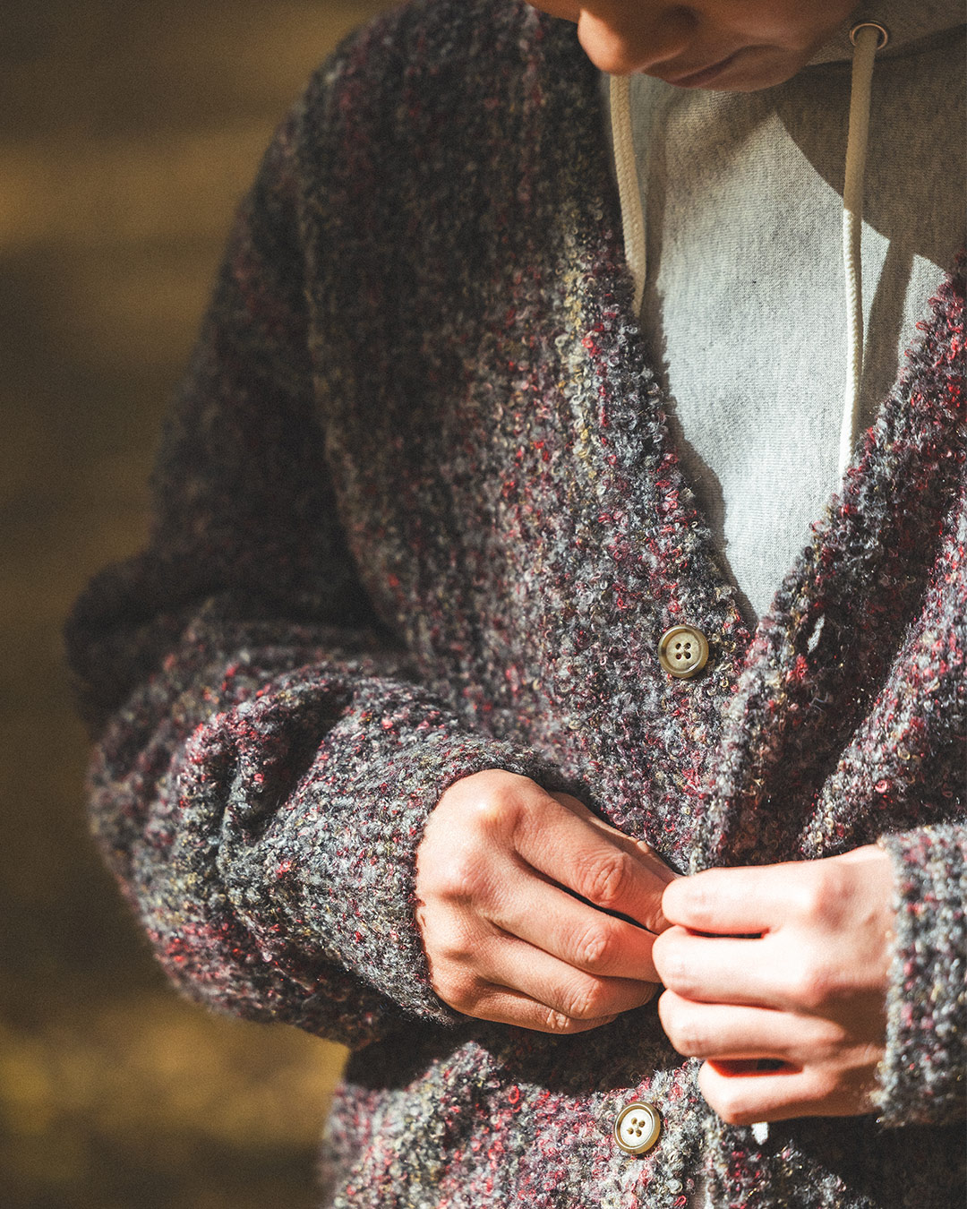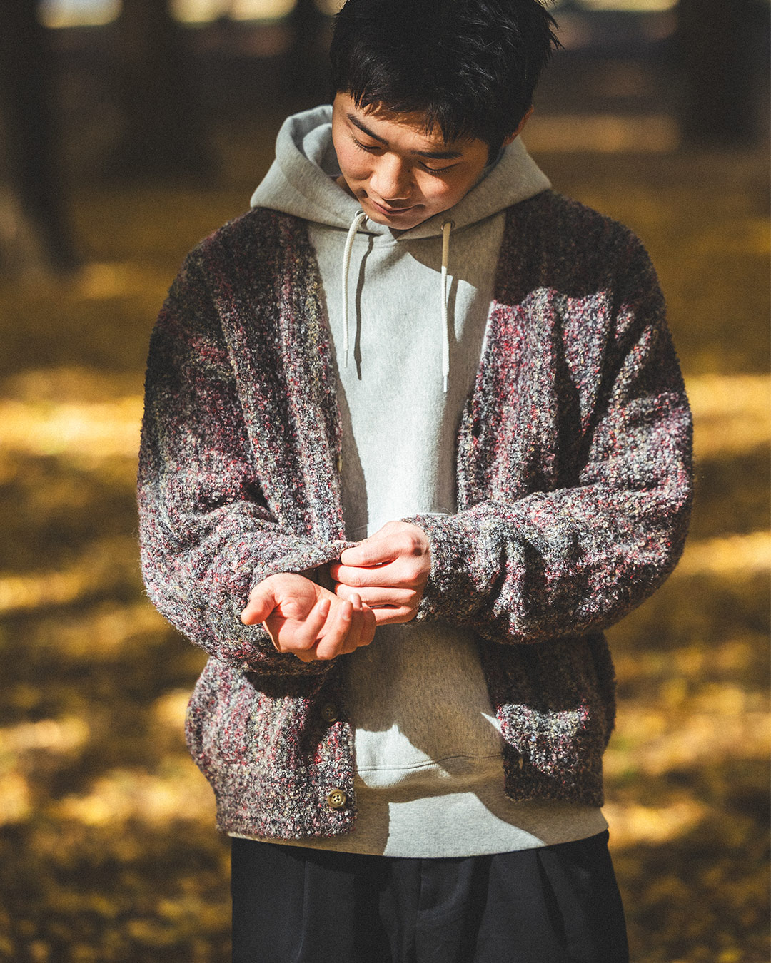 いつものコーデに重ねるだけで、表情が変わるニットカーディガン。着脱しやすく、体温調節も自由自在。