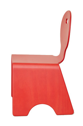 今回フェニカが別注したのは、2002年に製品化に向けて開発が進められたキッズチェア。ホワイトビーチのナチュラルな素材と、3次曲面で作る成形合板、お互いの魅力が合わさって、やさしいユニークなフォルムを生み出しました。フェニカは、この木目を生かしながら、これまでになかった赤で特別にオーダー。住空間を選ばずに使える、ミッドセンチュリーの雰囲気も加わりました。
