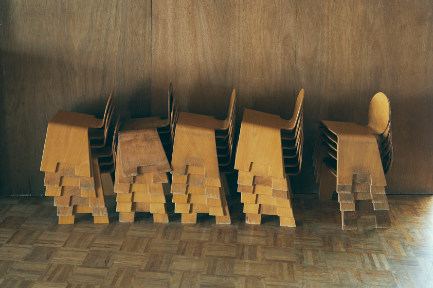 「成形合板の技術が普及したのは1950年代に入ってから。住宅が必要とされ、建築家やプロダクトデザイナーに注目が集まるようになった中で、デザインの力が咲いた時代だったのでしょう。そこに薄くて曲線が作れる成形合板の技術は、欠かせないものでした。また公共施設や宿泊施設がたくさん建設されるようになり、よりシンプルな客席や座椅子などを大量に求められるようになったのが大きい。その頃は、建築家が内装も担当するのが当たり前の時代でしたから、建物に合わせたコントラクト家具を考えていく中で、ミニマムでシャープな、過去にないデザインを成形合板が担っていきました」