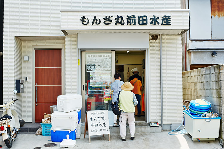 都内から車を走らせること小1時間。逗子インター(横浜横須賀道路)を降りて、最初のお目当ての店は、鎌倉・材木座にあるしらす漁・直売を営む「もんざ丸」。ワタナベマキさんも直接買いにくるというご指名の店だ。時期によっては、ワカメやタコ、イセエビなども店先に並ぶ。ちなみにtwitter(もんざ丸@前田水産)とfacebookがあり、店主の呟きや漁の獲れ高が覗ける。ナビにセットした住所のそばにあるコインパーキングに車を停めて、お店を探す(意外と近くにコインパーキングがあるのでご安心を!)。お店が見つからない、とキョロキョロとあたりを見渡しながら歩く。昔ながらの商店が立ち並び、海も近いせいかのどかな雰囲気は、旅心地で悪くない。ようやく「もんざ丸」発見。