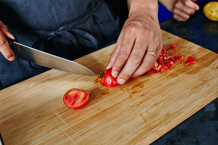 土井地 混ぜる時にトマトの形が崩れてもいいんですか? そっとかき混ぜた方がいい?(意外と慎重)