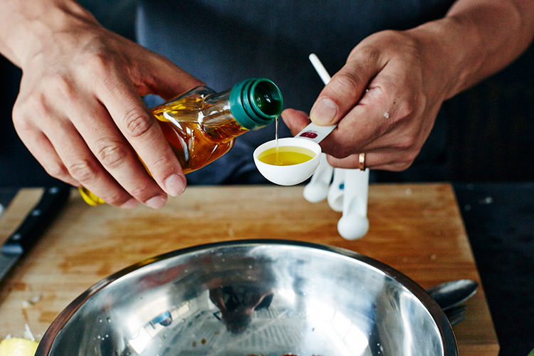 土井地 はい! これくらいでいいのかな? 最後にもう1度オリーブオイルをまわしかけるんですね。