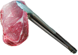 - 異なる火力で焼くことができる“スリーゾーンファイヤー”で焼かれたステーキ肉。「ミートプレッシャーで網の焼き目を入れると、見た目の美味しさも楽しめます」(秦)