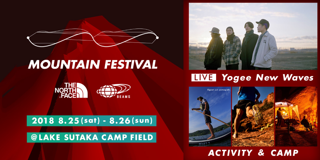 本フェスティバルは、これまでそれぞれアウトドアカルチャーを追求してきたBEAMSと<THE NORTH FACE>が、プロダクトにとどまらず体験までを提案することで、その本質をともに伝えていこうという考えのもと実現したもの。日中は各種アウトドアスポーツのワークショップ、夜は現代版シティポップの代表格、「Yogee New Waves」のライブを実施し、アウトドアシーンにおけるアクティビティと音楽の融合を図ります。どうぞご期待ください。