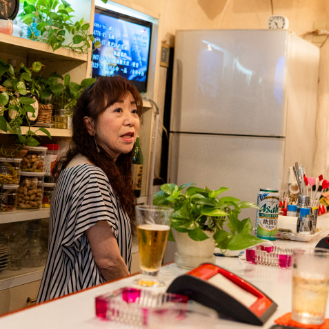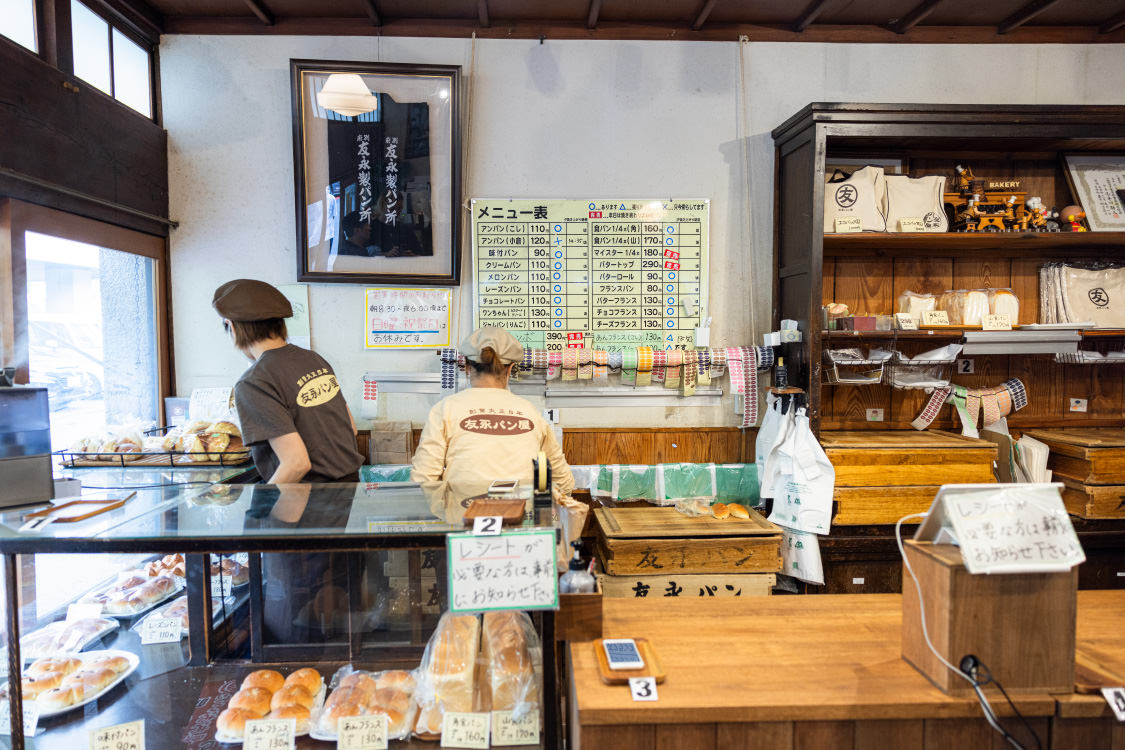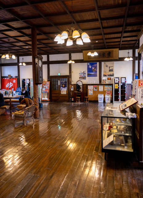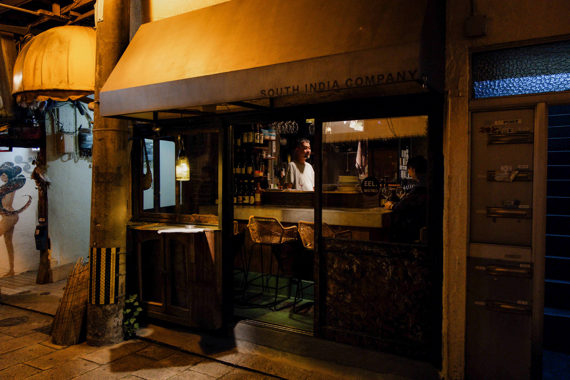 別府随一の観光名所「竹瓦温泉」。そのほど近くにある「竹瓦小路」は、日本で最も古いアーケード街で、「アンフェ」はその一角にお店を構える。マスターの話を肴に飲むナチュールは、別府の初夜にうってつけ。