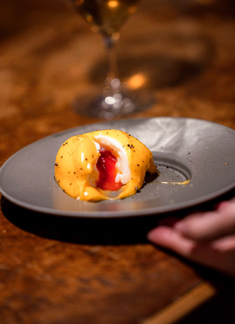 2025年4月にオープンした、路地裏も路地裏にある大人の隠れ家。薄暗く、こじんまりした店内にはカウンター席が数席あるのみ。入店するのに勇気がいるけど、入ったら最後、おいしいナチュラルワインと絶品料理、そしてナイスなマスターにやられちゃう。