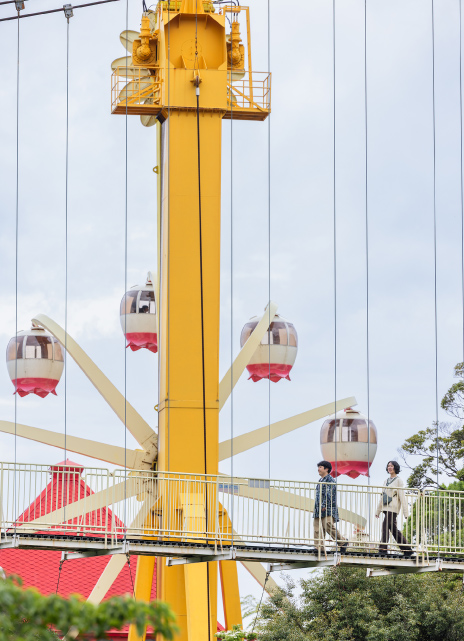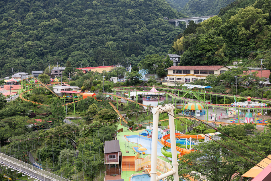 昭和4年創業。園内にはゴーカートやジェットコースターなどメジャーどころが一通り揃っているなか、一番人気は「フラワー観覧車」。日本で唯一の二重式観覧車からは、別府の大パノラマを見ることができる(結構怖い)。