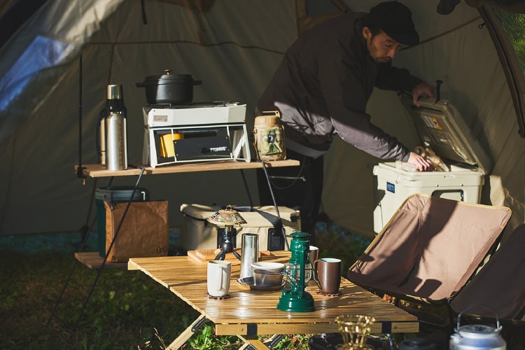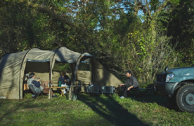 ファミリーやグループでのキャンプを楽しむことが多いという堀越さん。「自分は割とコツコツ作業して、みんなが寛いだり楽しんだりしている姿を見ているのが好きですね」とのこと。非常にホスピタリティ精神に溢れるがゆえに、悩みのタネは携行ギアが増えることだとか。