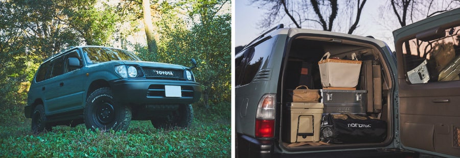 当然、車内のラゲッジスペースはキャンプギアで溢れかえります。「パンパンに積んで、人をたくさん乗せた状態でも走りに全然不安はないです。雨が降った後のキャンプ場でもスタックすることなく走り抜いてくれますよ」。パワフルな走りに満足度は高いとのことです。