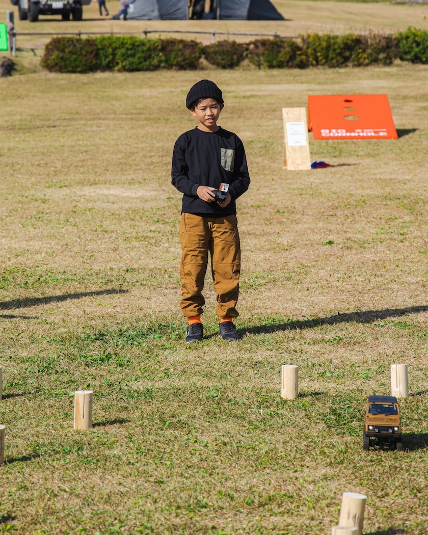 ラジコンカータイムアタックや薪積み競争など、外遊びならではのコンテンツも盛り上がりました。