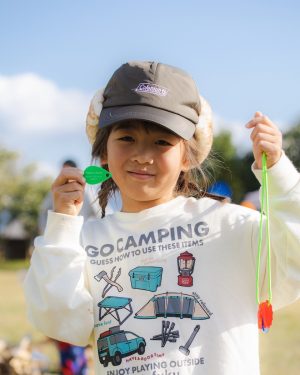 イベントのキーワード「ヒトとヒトのつながり」を体現するために用意された「ムスビのコイン」。このコインは、ワークショップに参加したり、買い物をすると貰える特別なアイテムなんです!参加者同士で交換しながら多くの種類を集めた優勝者には、キャンプで活躍する素敵な賞品が贈られました。自然と会話と交流が広がり、まさにつながりに満ちた、ハッピーな空間が生まれました。