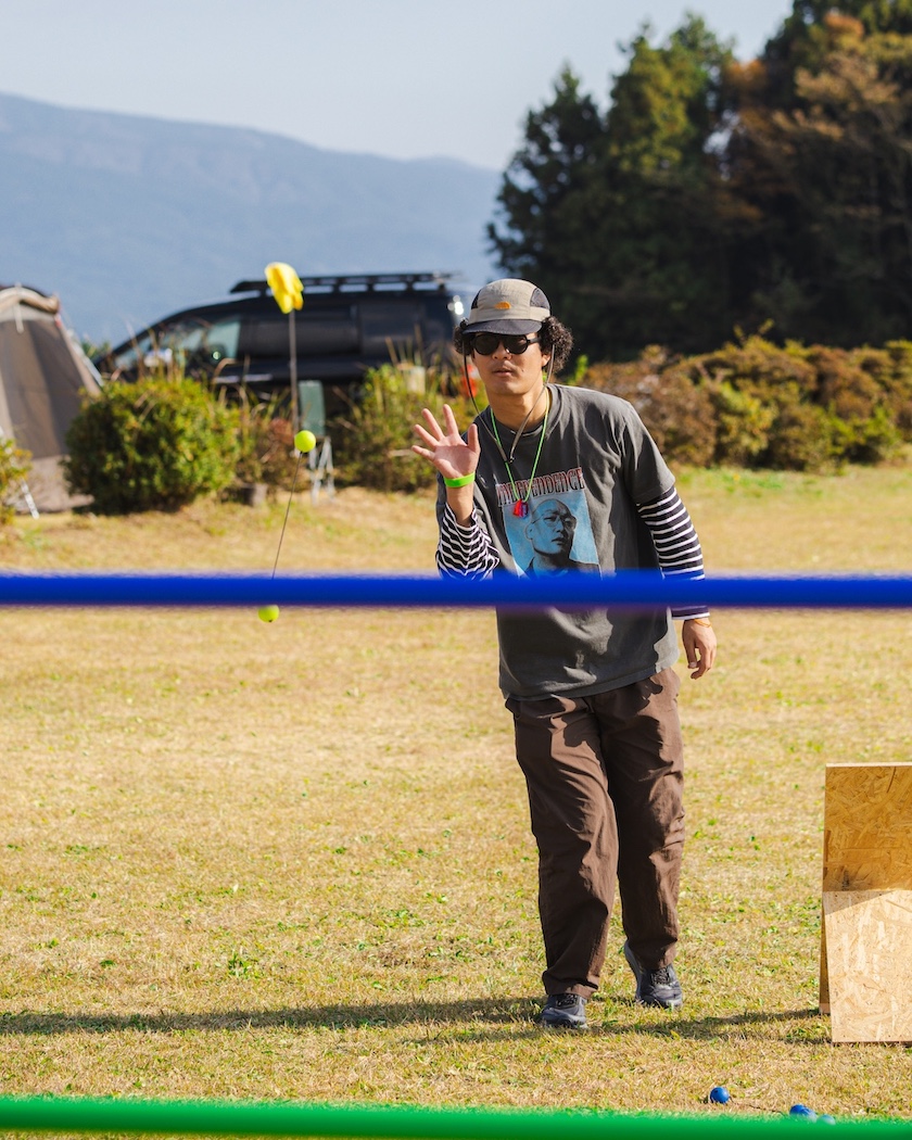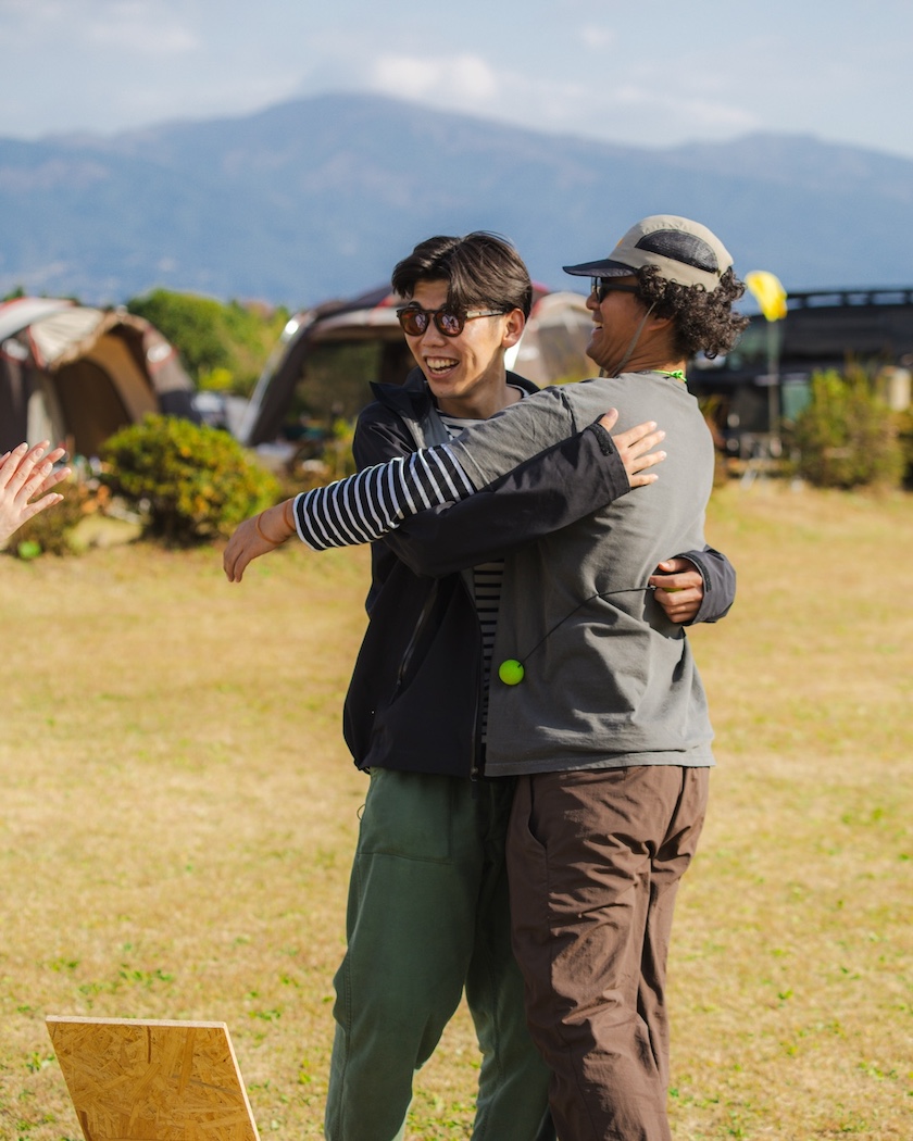 秋のキャンプ場は涼しいイメージがありますが、日差しは意外に強く、時には目を疲れさせてしまうことも…。環境にも配慮した〈SUNSKI〉のサングラスは、強い日差しから参加者の目をしっかりと保護し、快適な外遊びのスタイルを提案してくれました。