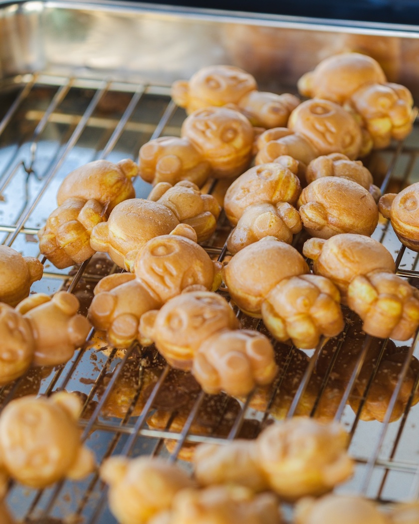 銀座に本店をかまえる フィンガースイーツのお店「PETIT CUSTA」からは、普段10種類あるメニューの中から厳選した5種類のベビーカステラを厳選!なかでもキャラメルフレークは一番人気で、キャンプ場ではなかなか味わえないお菓子として参加者も大喜び。