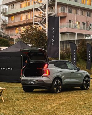 キャンプには珍しい電気自動車の出店は、〈Volvo〉の『EX30』。色合いやフォルムがアウトドア空間にも馴染み、当日に開催されたパズルがプレゼントされるクイズ大会も大いに盛り上がりました。