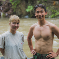 天然の水風呂に頭からザブーン。町のサウナだと、水風呂に入る前に汗を流すのがマナー。頭から潜ることを禁止にしている場所も多数。けれど、テントサウナの水風呂や川や湖。たっぷり汗をかいたまま、頭から水にザブーンでも無問題。
