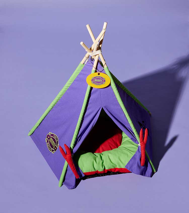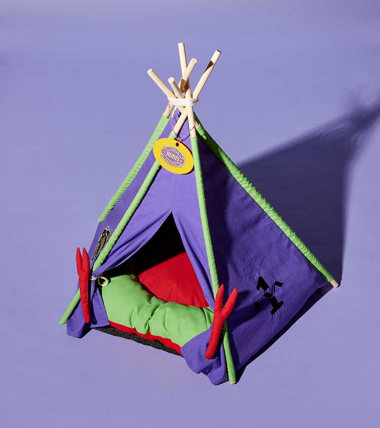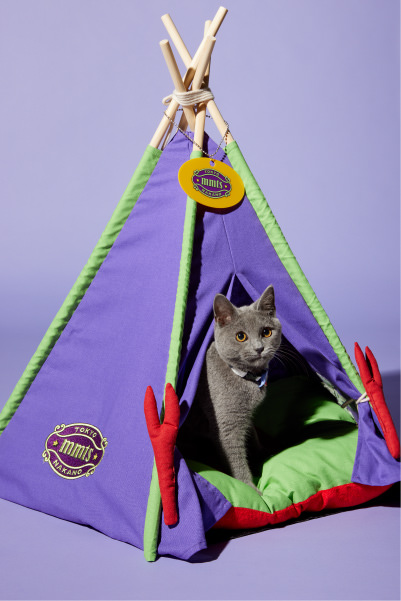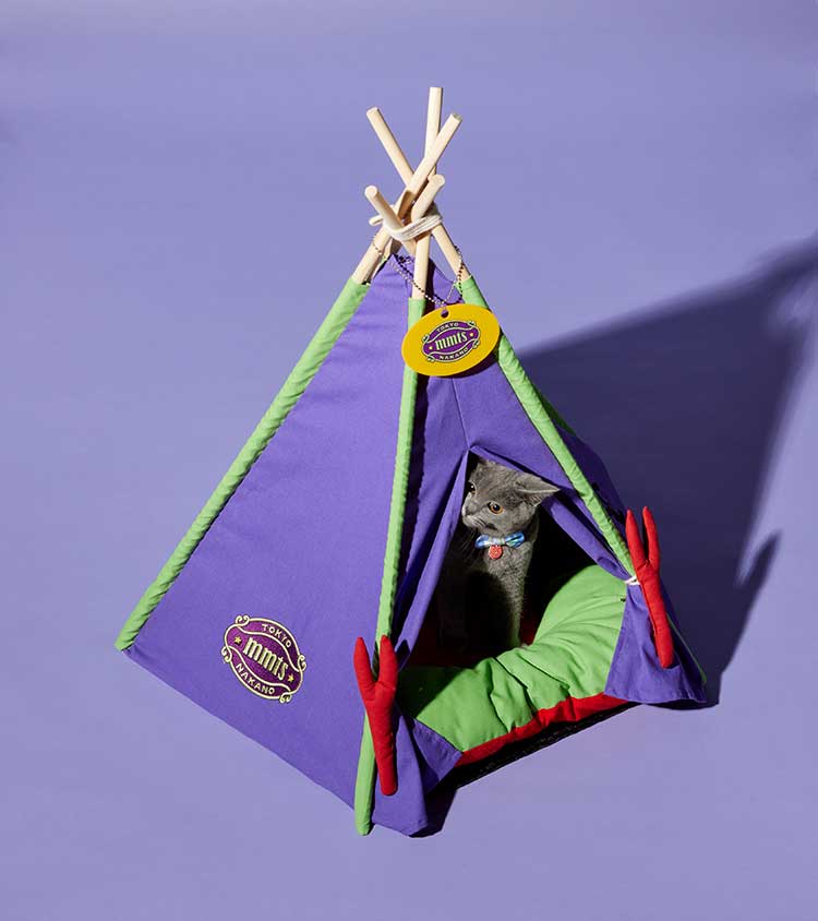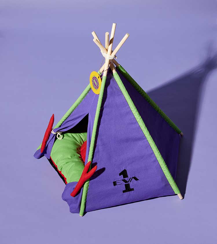 キャットハウスはずっと作りたかったんですけど、まさかエヴァコラボで叶うなんて。見てください、このソロキャンプブーム下における本格的なテント住まい! プレートも全力のかわいさで、ひっくり返すとNERVにもなる。日替わりでお好きなほうをお使いください。初号機カラーでインテリアとしてもバッチリなので、ぜひお部屋の、視界に入る場所に置いてあげてください。