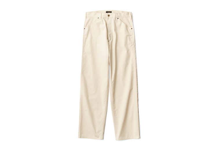 ワイドシルエットのペインターパンツ。高密度のセルビッチチノを用いた別注モデルであり、経年変化も楽しめます。
