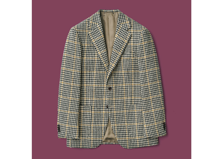 ハウンドトゥース柄ハリスツイードで仕立てた新作ジャケット。ヘリテージテイスト溢れる本格派の一着ですが、マスタードカラーのオーバーペーンで野暮ったくなりません。