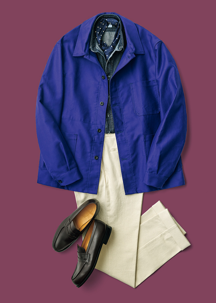「出自にしっかりとしたルーツがある、ミリタリーやバーシティといったカテゴリーに注目が集まっている今季。ワーク&アウトドアもその流れのひとつです。フレンチワークやアメリカンワーク、ブリティッシュカントリーなど、国を問わずクラシックなアイテムを採り入れるのがポイントですが、着こなしは上品なものとミックスするのが鉄則。大人らしい綺麗めながらも、リラックス感のあるこなれた雰囲気を醸せます」