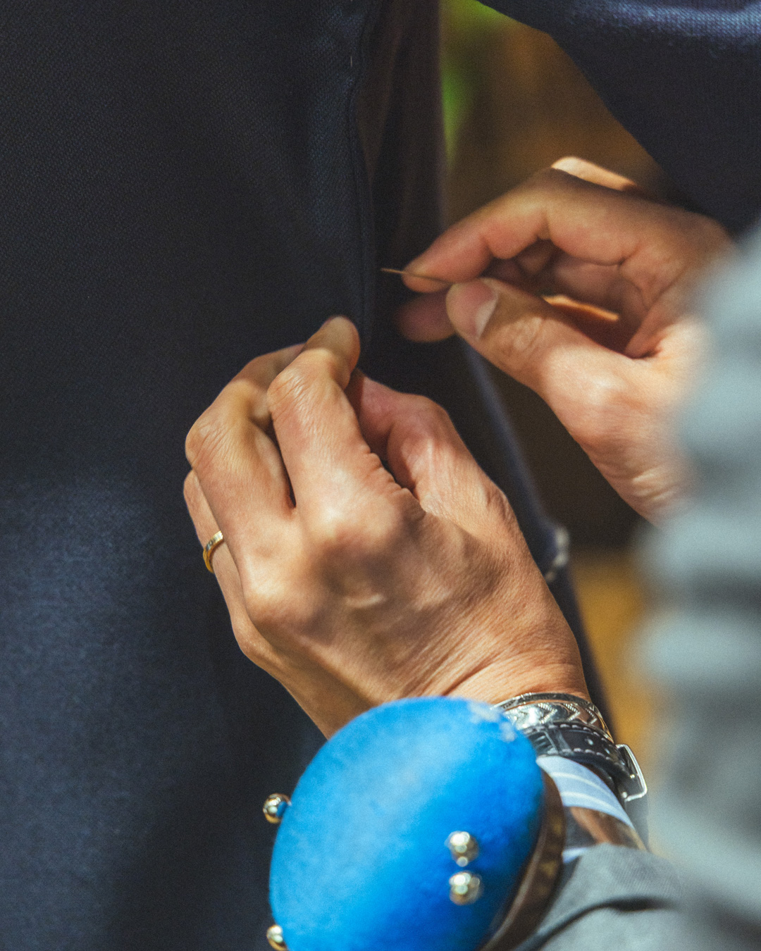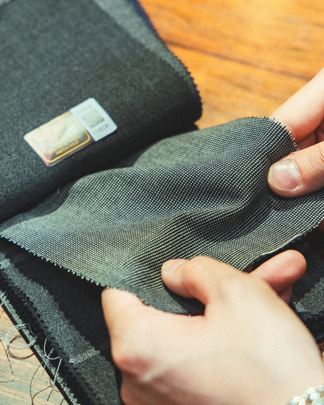 「最初は本当に生地の色柄や好みから選んでいましたがダブルブレストにした時に見える生地の面積、そこから来る印象などを中澤さんと相談しながらこれだ!と思えるものが見つかりました。」