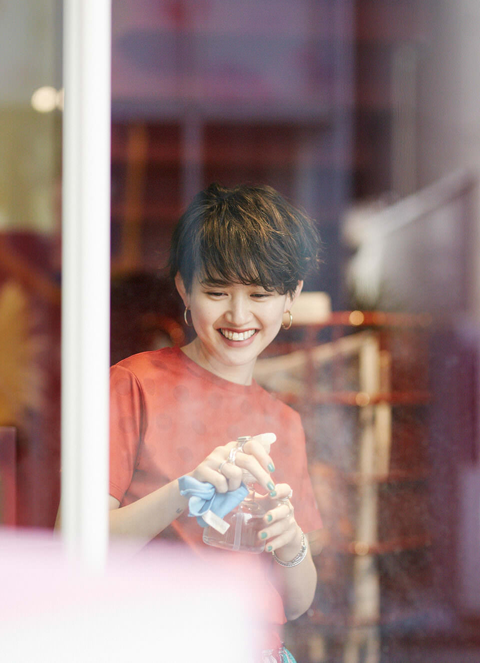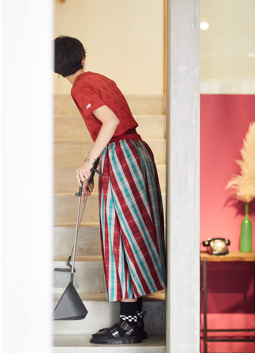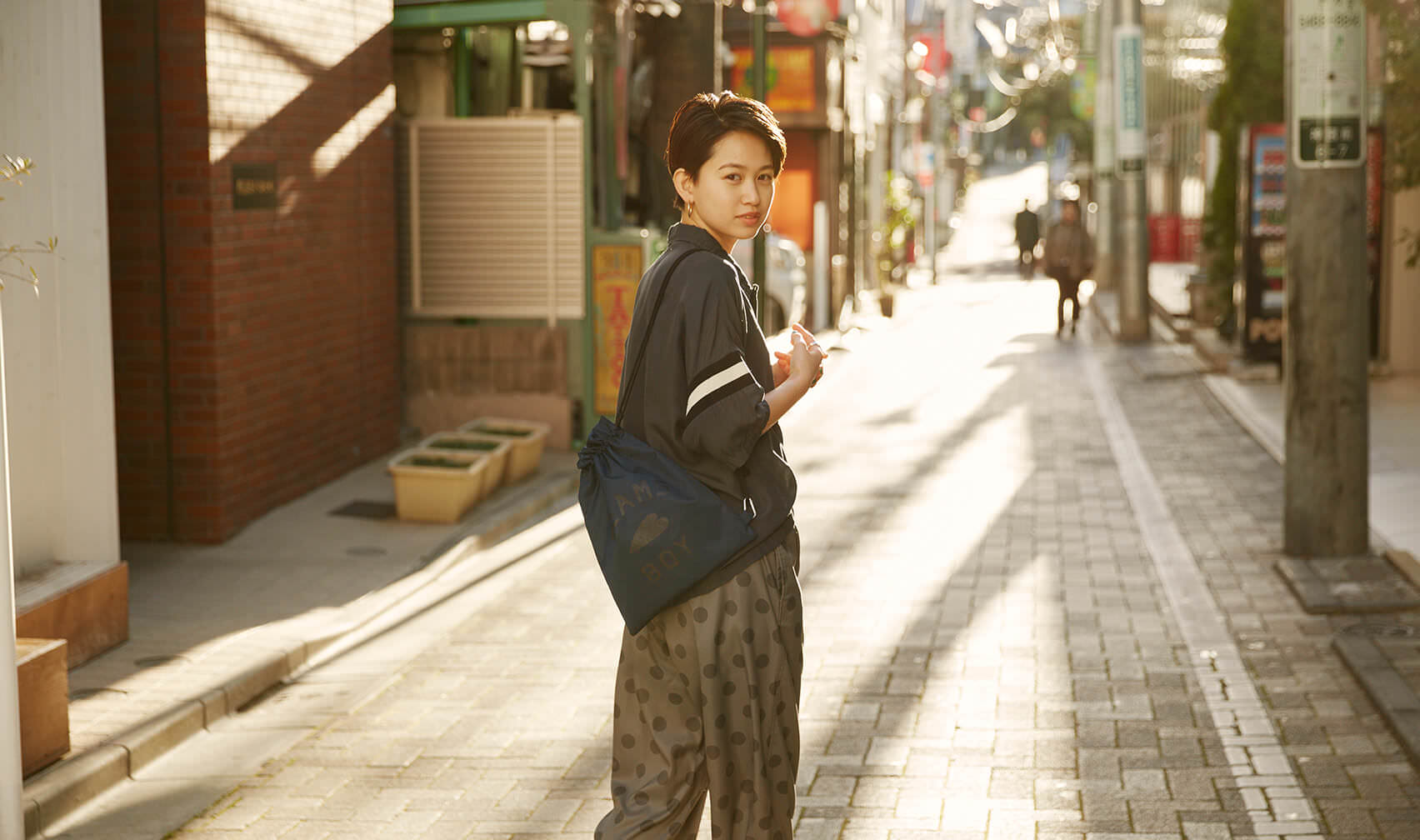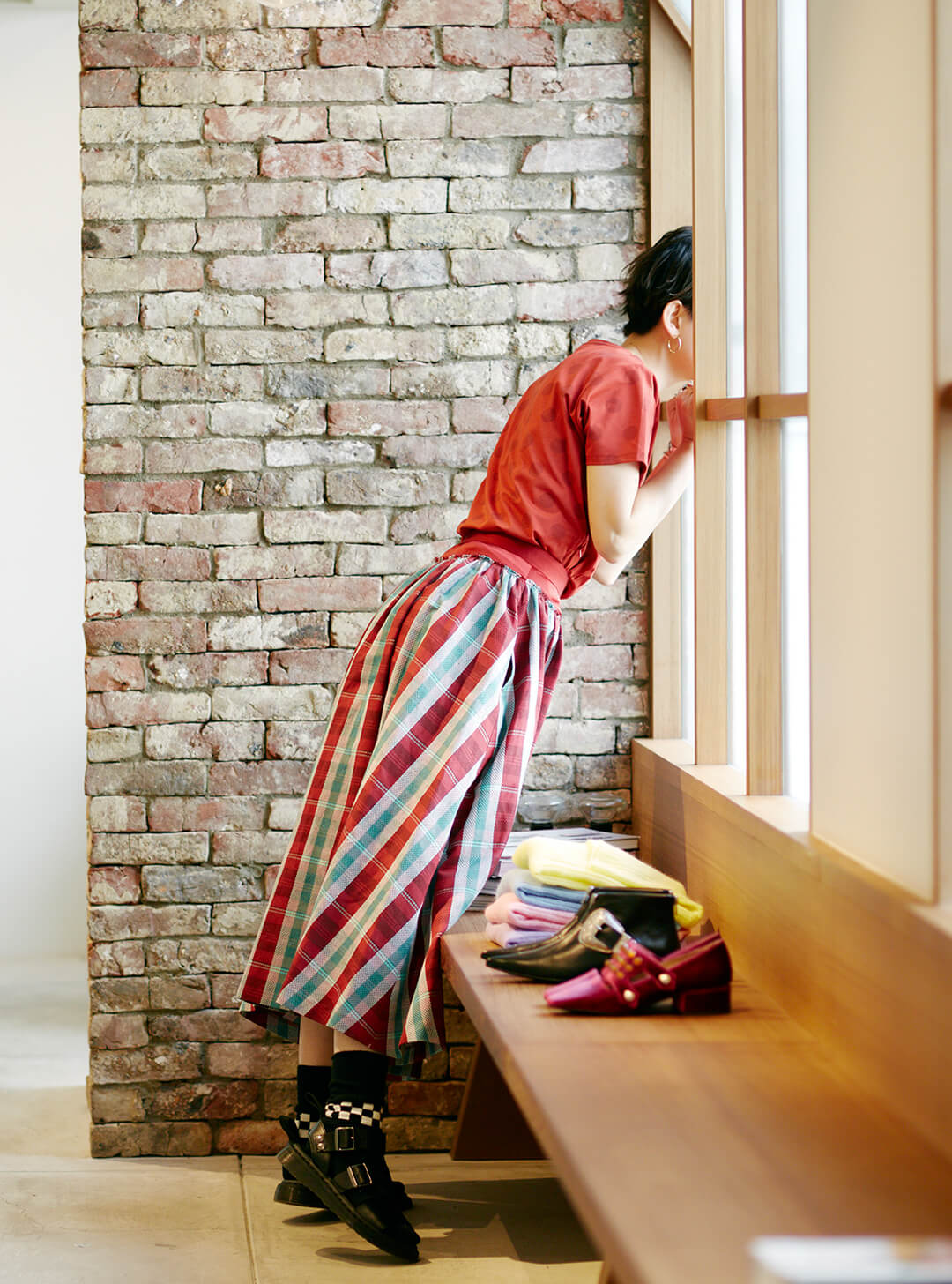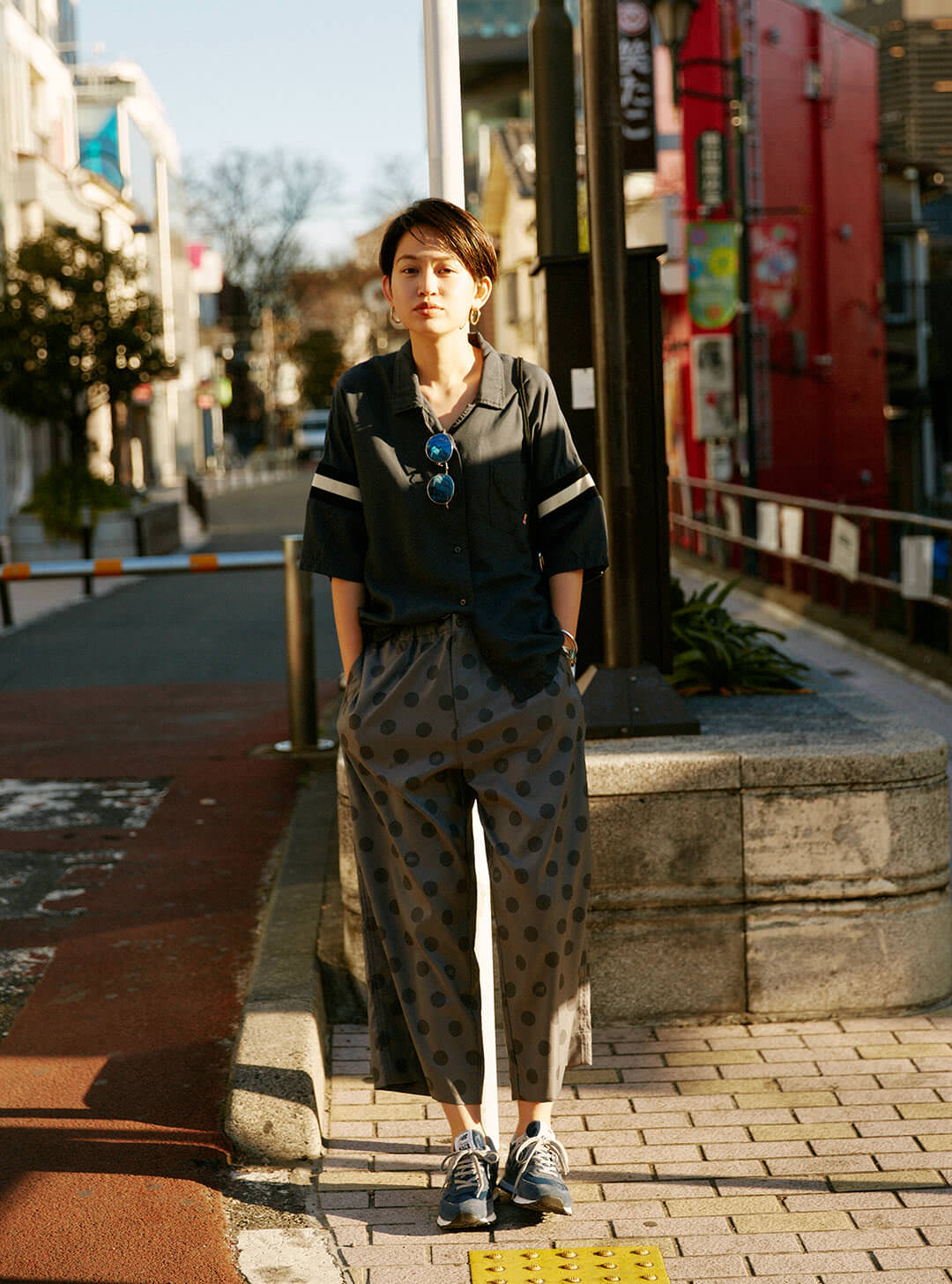 今は「BEAMS WOMEN SHIBUYA」でショップスタッフとして働きながら、たまにモデルのお仕事をさせていただいています。洋服が好きでファッション系の専門学校に通い、アパレル関係の仕事ができたらいいなって思っていました。そんなときに、BEAMSがカップラーメンとコラボしたり、一見すると洋服と関係ないことを企画していて、面白いことをやる会社だなって思ったのがきっかけで、BEAMSに入りたいと思ったんです。