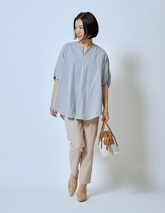 そんな不快指数の高い中で極力ストレスなく過ごすとなれば、やはりさらりと着られる薄手のシャツが丁度良さそうですね。リネンやポリエステルを始めとしたベタつきにくい素材、あるいは熱がこもりにくいゆったりめのシルエットだと、いっそう理想的って感じでしょうか。