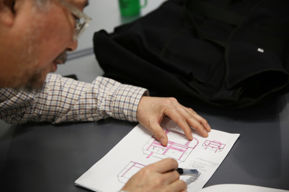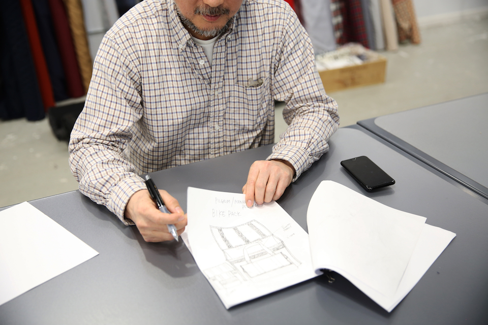 - 90年代に、<Manhattan Portage>にうちのオリジナルブランドでディスパッチャーっていうレーベルを作ってもらったことがあるんだよね。昔はシックスアベニューにバックの工場街があって、そこで作ってたはずだけど、今は台湾製。でも今回、お題をもらって、改めて<Manhattan Portage>を勉強した。いろいろ調べて、サンプルもいっぱい買ったんだよね。で、見てみたんだよ、台湾製のもの。すばらしいよね。作りも、デザインもすばらしい!付属もすばらしい!だからちょっとびっくりした。やっぱりああいうのは専門でやっていると、全然違うのね。やっぱり洋服屋が考えるアイディア。だから今回、わりとざっくりモックアップを作ったつもりなんだよ。なんでかと言うと、ここから踏み込んで行くと、分からないことがある。逆に餅屋に作ってもらった方が、絶対に良いものができると思う。だから大枠だけやって、あとは全部あっちにやってもらったほうがいいな、って。いや、本当にびっくりした。<Manhattan Portage>がこんなに進化していたって思わなかったから。他のも見て来たんだけど、みんなそうだった(笑)。俺がね、やっぱバックとか買ったり作っていたりしていたのって、90年代のほとんど頭、真ん中くらいだよ。あの頃と全然変わってた(笑)。良い勉強になりましたよ。