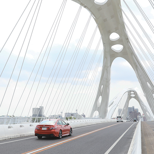 緩やかな曲線が美しい、黒川紀章氏による豊田大橋。 -
