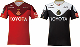 名古屋グランバスのメインカラ一であるバーバリアンレッドがペースのフィールドプレーヤーと、鯖を連想させるモノトーンカラーがベ—スのGKユニフォームを販売。