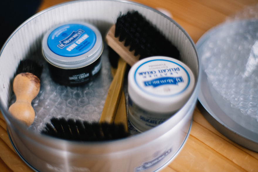 「靴の手入れは着古したTシャツで。ビームスの入社時に社長から新入社員へプレゼントしていただくシューズケアキットをずっと大切に使っています。」