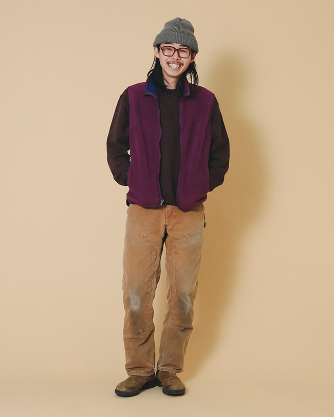 〈Patagonia〉のシンチラシリーズといえばスナップTが有名なのでベストは周りと被りにくいのに、実は90年代、アメリカの〈Patagonia〉スタッフはみんなベストを愛用していたという逸話があるのも嬉しいポイント。ファッションからアウトドアシーンまで幅広く活躍してくれるこのベストは、これからも大切に着続けたいと思っています。