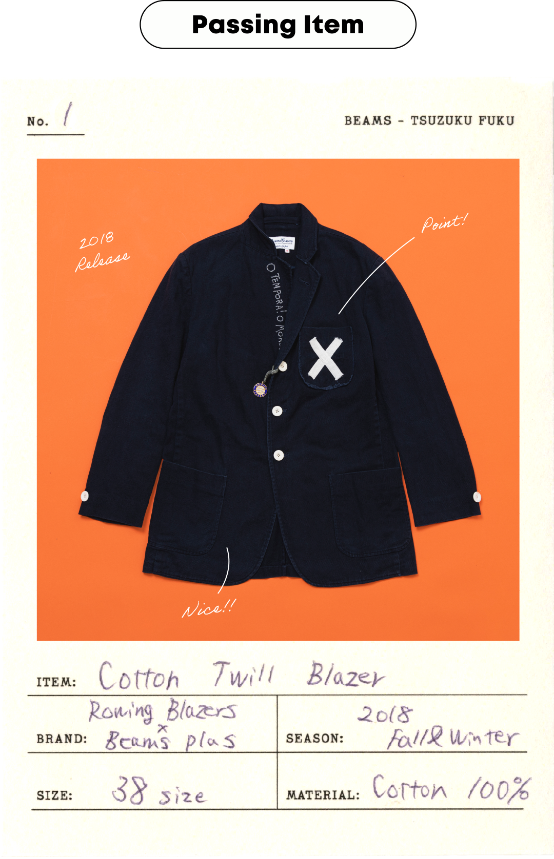 柳井さん:購入時に自分が惹かれていた「シティボーイ」というワードをBEAMSの中で“スタイル”として当時から体現されていた若山さん。ご自身のキャラクターに合ったサイズバランスや小物使いでとにかく洒落てる方だな~と思って見ていました。今回アイテムを選んだ際、直感的に若山さんのブレザールックを見たい!と思い指名。アメリカルーツのウェアやスタイルが得意なイメージがあるのでお手のものだと思います!