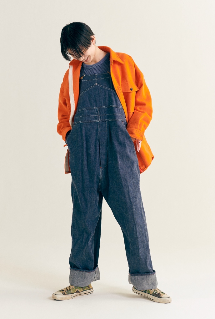 將身體完整包覆的吊帶褲(OVERALL)充滿存在感,也正是〈BEAMS BOY〉中最受歡迎的工作服。