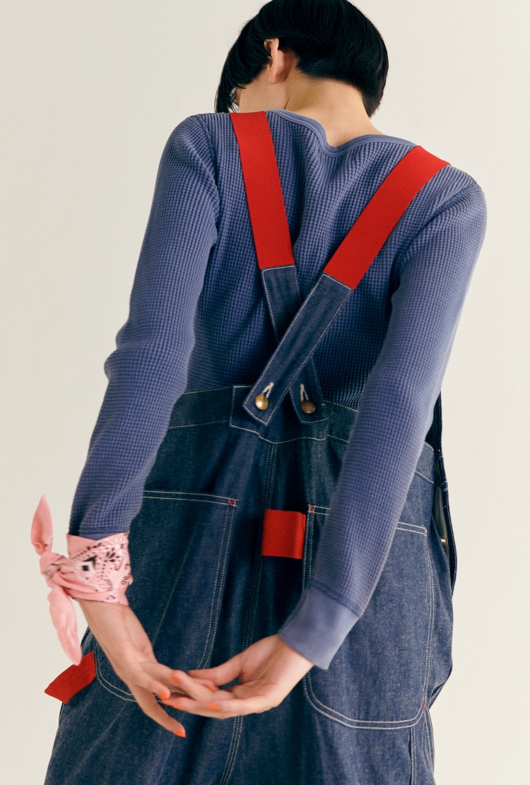 我們的NO.1工裝「吊帶褲雖然很可愛,但不太好駕馭。」或許有很多人抱持著這種想法。不好穿、很重、肩膀很沉、上廁所很麻煩等種種不方便,但是得以補足這些不便的多樣魅力正是吊帶褲的特徵。工具掛圈、側口袋、只有吊帶褲才有的胸前大口袋等以實用為主的細節。並且為了增加強度的3本車縫和門襟細節也是因機能性而生的美麗設計。像寶藏盒一般,將我們所喜愛的“機能美”含納融合的工作服,正是吊帶褲。〈BEAMS BOY〉的STAFF,在店鋪進行勞力工作時,也會不約而同地著用吊帶褲。就這樣成為了我們充滿象徵性的工作服。