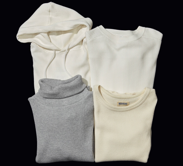 雖然說過好幾次,但果然提到秋冬的〈BEAMS BOY〉定番內搭,絕對非華夫格上衣(Thermal)莫屬。本季從厚實到輕薄、高領到連帽,推出各式各樣的單品。