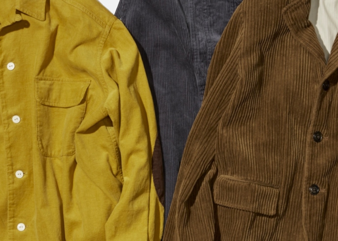 對我們來說,常春藤風西裝外套(Navy Blazer)和成套的常春藤長褲是不可或缺的主角。它的特點是,一邊保留經典而又充滿活力的細節,一邊呈現出流暢的錐形線條。另一方面,最近作為大叔感長褲在男性時尚也很有人氣的休閒褲。在〈BEAMS BOY〉中從以前開始就是作為定番的衣櫃必備品。寬大的長褲,深深的摺邊所產生的獨特輪廓獨一無二。以褲子為主軸,打造出大叔感風格的造型吧。