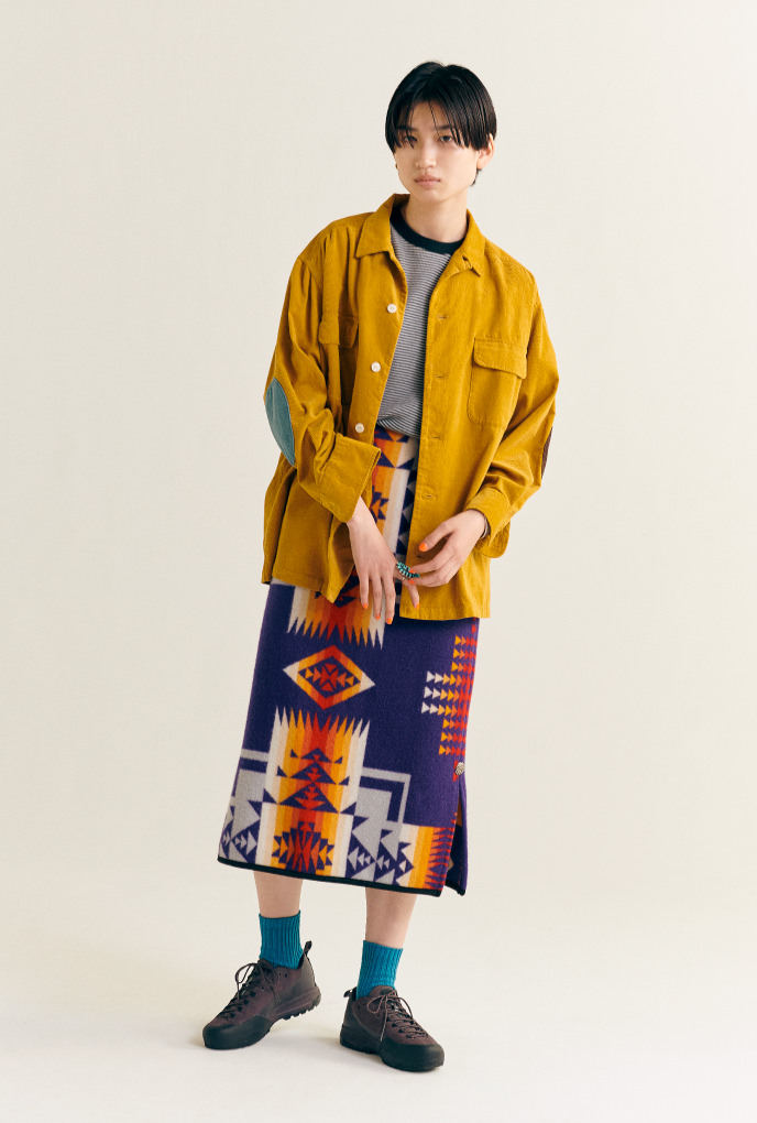 乍看之下是搭配難度很高的「CHIMAYO VEST」,其實意外的很百搭。而且,和存在感強烈的單品搭配也不可思議的合適。試著用背心的花紋和色調,嘗試自己風格的穿搭也很有趣。