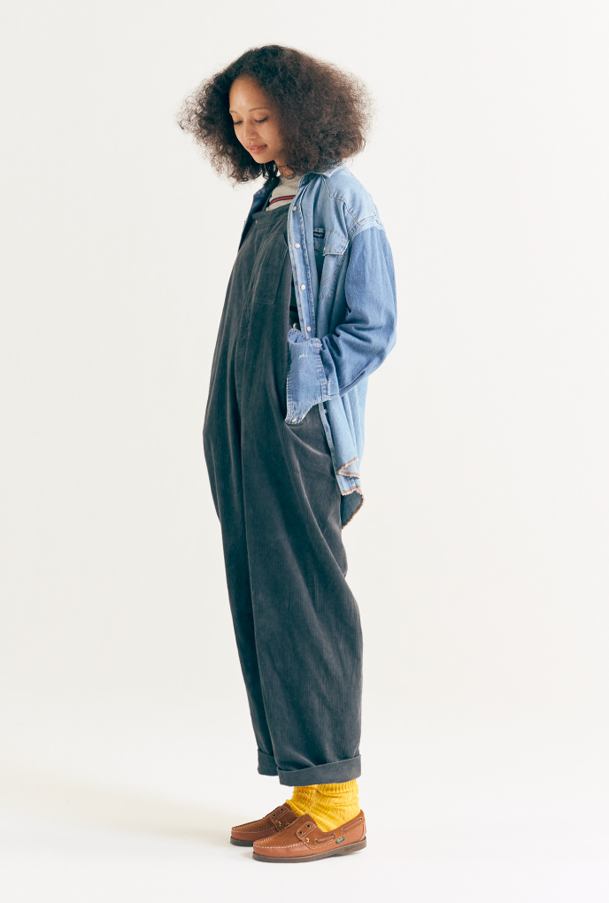 古著的吊帶褲是STAFF的私物。滿載的工裝風格讓人難以抗拒。