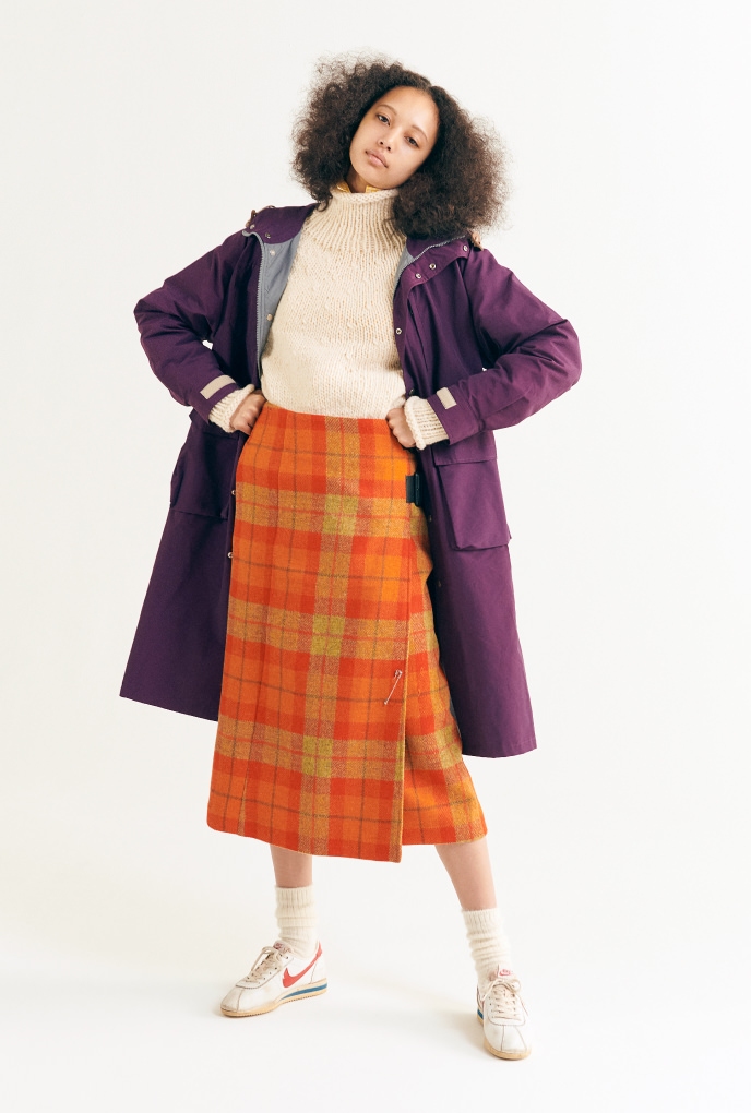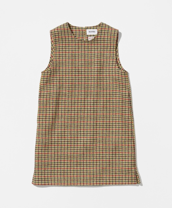 選用〈HARRIS TWEED〉面料的洋裝帶有一種男孩感,並具有我們獨有的氣質。當作背心也非常有趣。