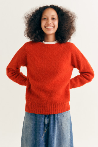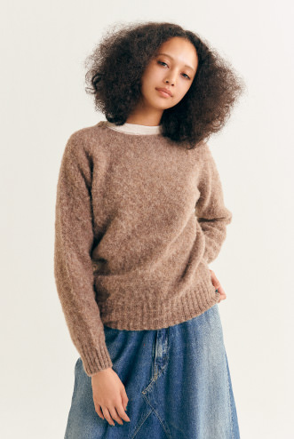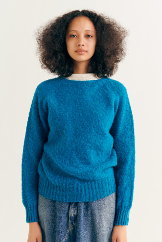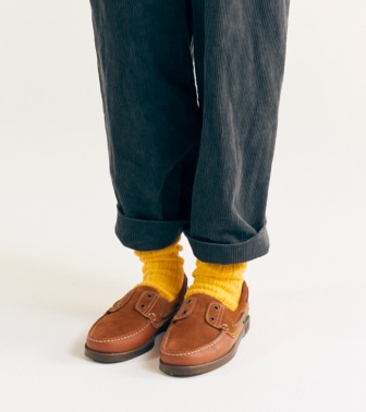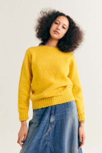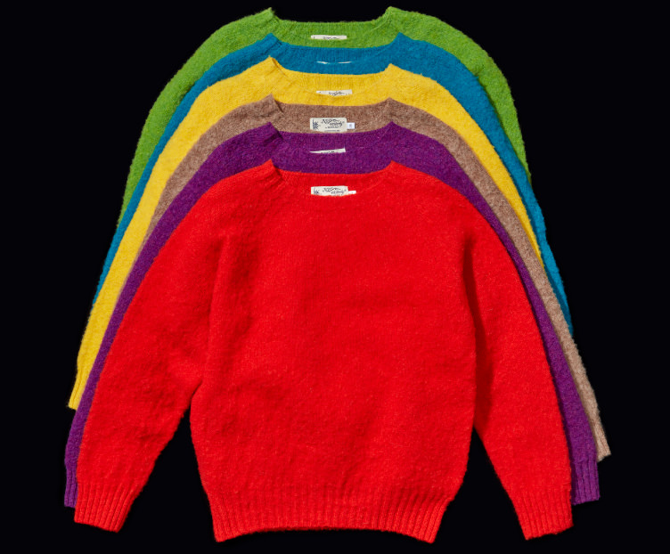 1929年,在蘇格蘭西北部創立的針織工廠〈Nor’Easterly〉。該公司親手製作的起毛毛衣(Shaggy Sweater),選用100%優質的雪特蘭羊毛,穿著起來溫暖柔軟的觸感相當有魅力。雪特蘭羊毛是雪特蘭品種的羊所生產的一種羊毛,能抵禦嚴冬的寒冷與濕度,一頭羊能收穫的毛量很少,相當珍稀。吊織機沒有側縫線,穿著起來毫無壓力且相當合身。此外,發色極為良好的豐富色調變化。想穿的顏色每年都在改變,沒有辦法只選擇一個,所以不知不覺就入手了一大堆了。