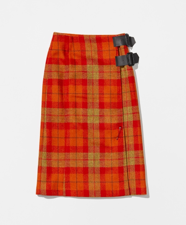 與英國風格感面料融合製作而成蘇格蘭疊裙。附屬別針當作重點點綴。